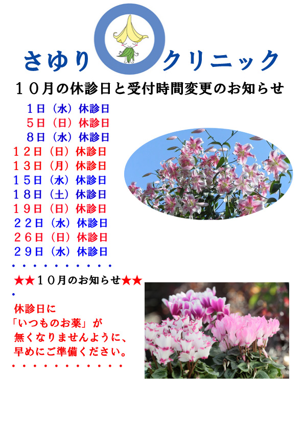 | お問い合わせメールは、こちらへ → info@sayuri-clinic.jp | ||||||