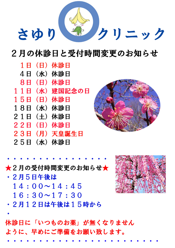 | お問い合わせメールは、こちらへ → info@sayuri-clinic.jp | ||||||